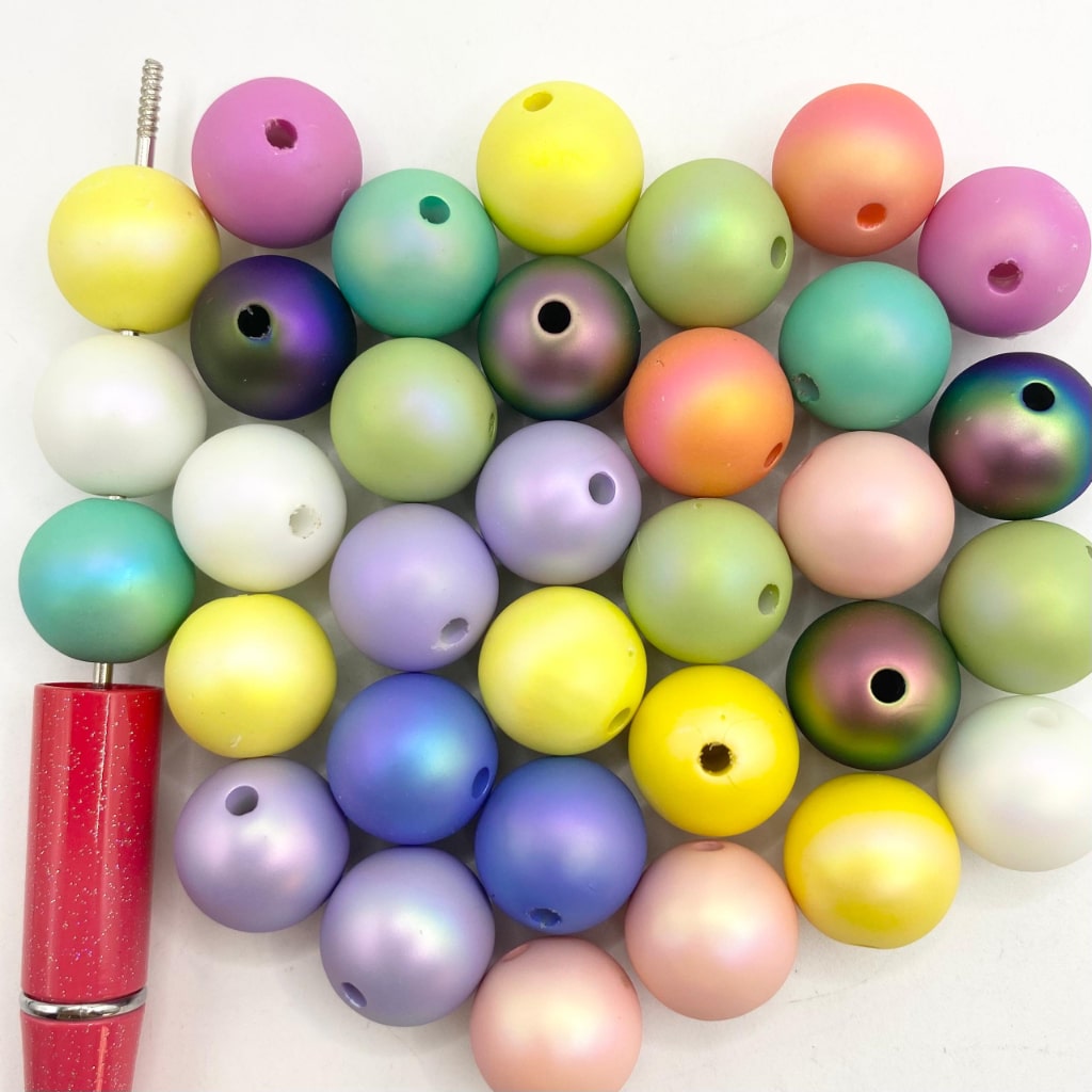 Rubber UV Plating Acrylic Beads, Solid Color, 16mm, Random Mix ,CM