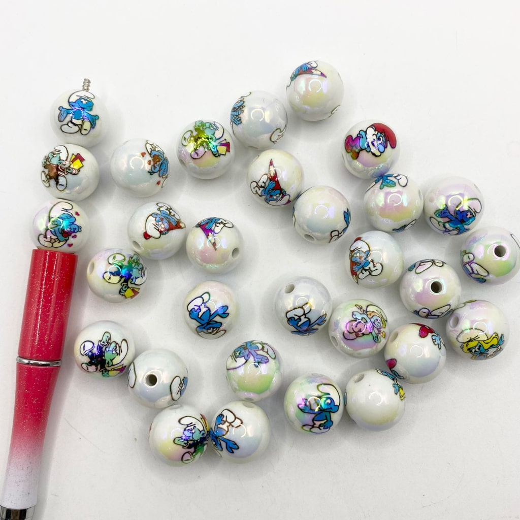 Makintab na Cartoon Character ang Smurfs Printed Beads na may UV Finish ,16mm,Random Mix ,SJ