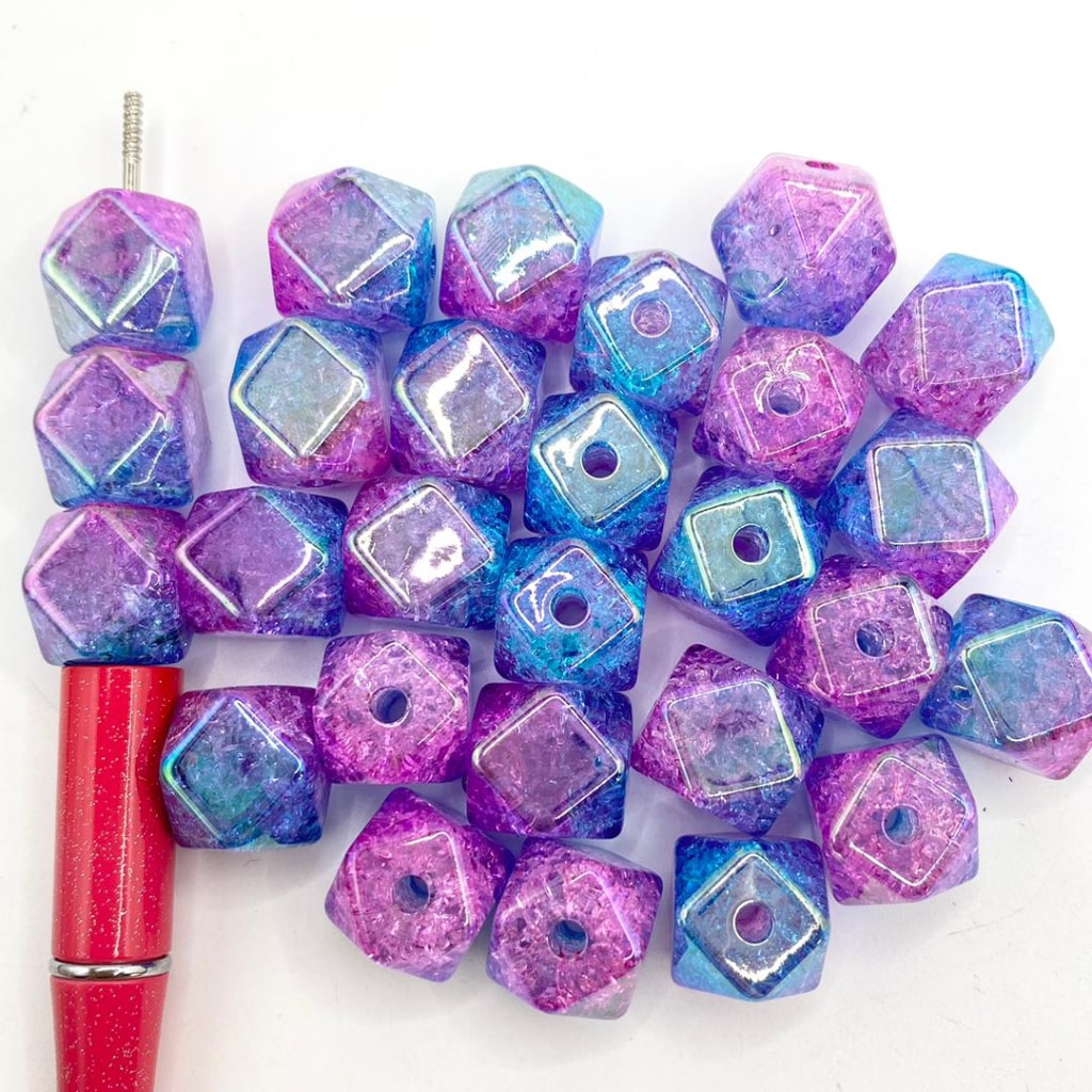 Crackle Purple to Blue Hexagon Acrylic Beads na may UV Finish ,14mm by 16 mm ,Random Mix