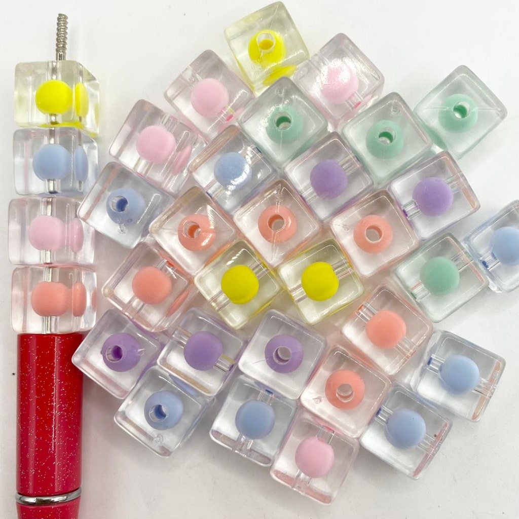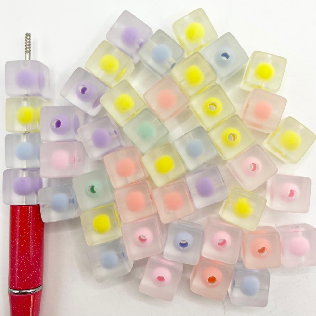 Double Layer Cube at Square Acrylic Beads,12mm,Random Mix