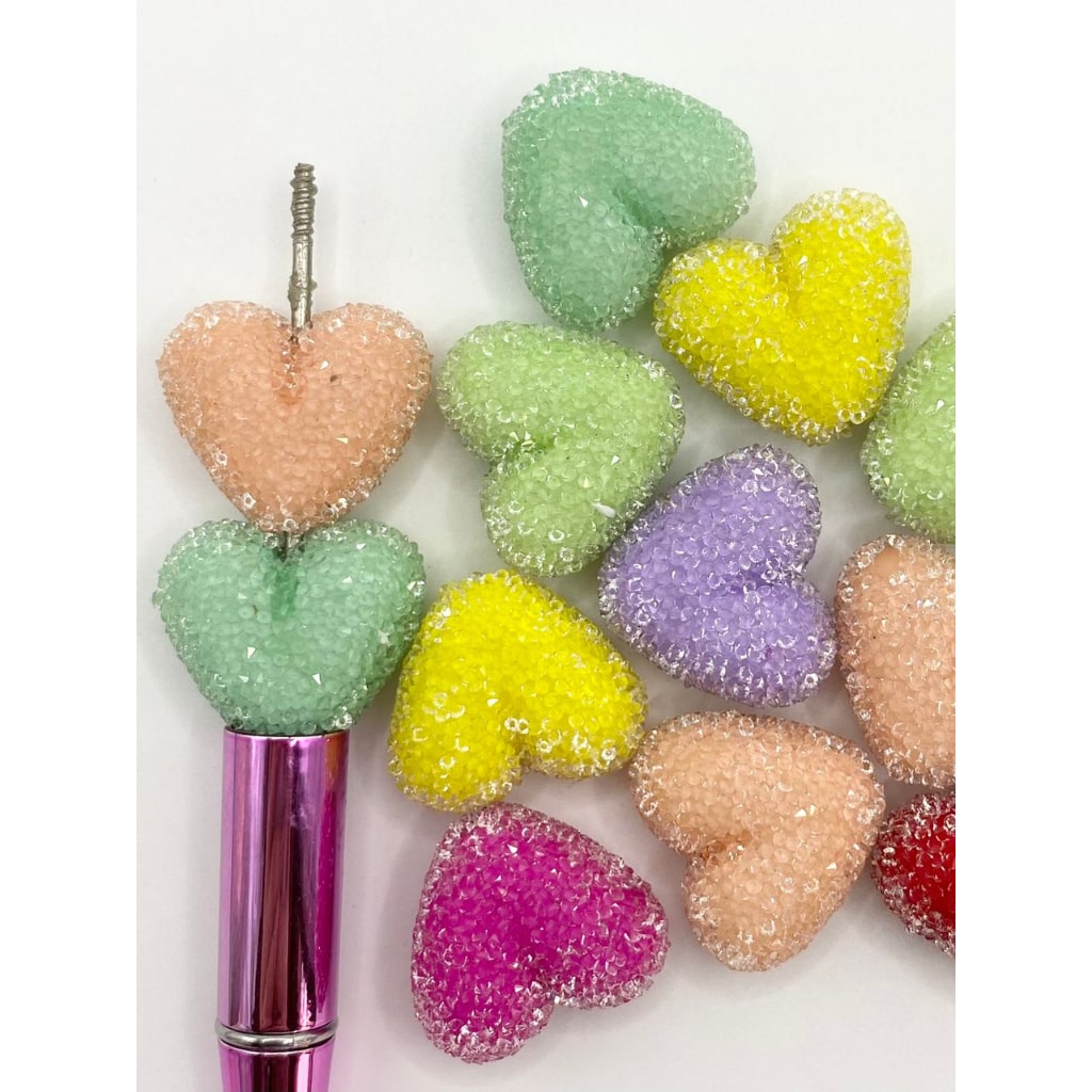 Sugar Heart Shaped Acrylic Rhinestone Beads ,21mm by 25mm,Random Mix ,YLD