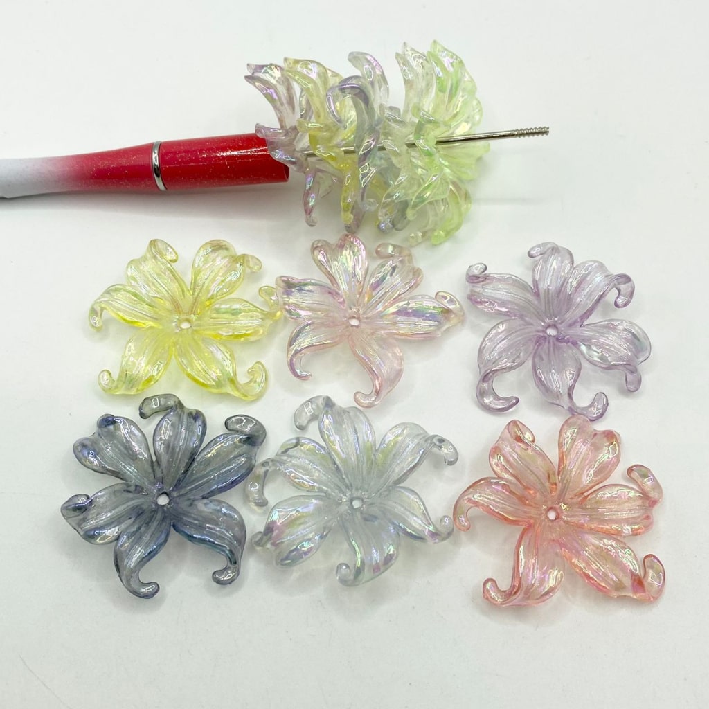 Clear See Thru Curly Leaf Big Acrylic Flower,43mm,Random Mix