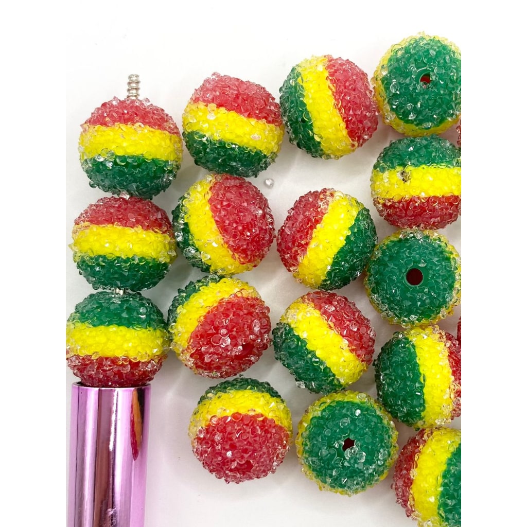 Mga Kulay ng Flag ng Brazil Sugar Rhinestone Acrylic Beads, Mga Kulay na Pula Dilaw At Berde ,20mm, ZY
