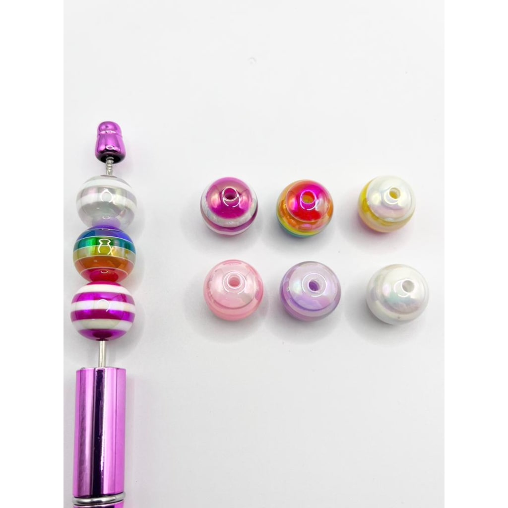 Multicolor Striped Glossy Acrylic Beads ,Random Mix,16mm,SJ