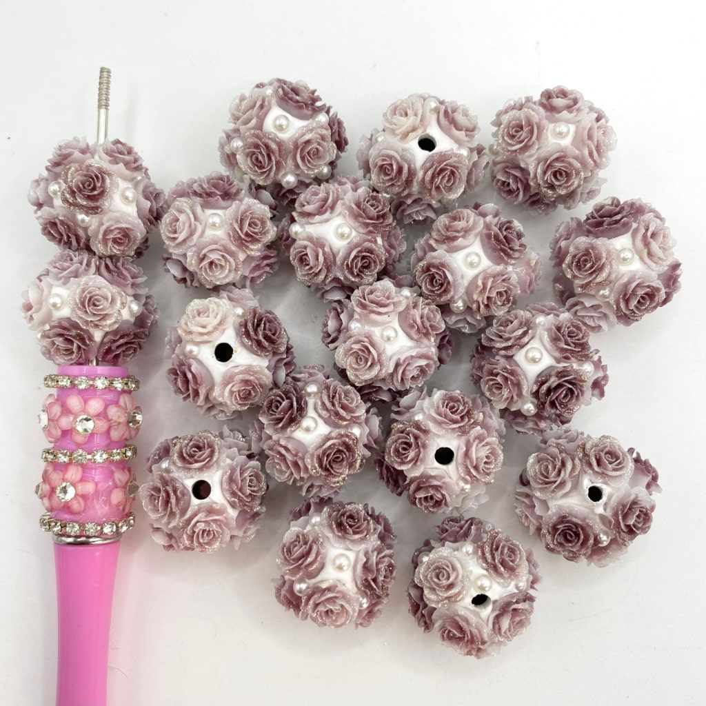 Gold Sparkling Rose Flower Fancy Clay Beads With Pearl,20mm