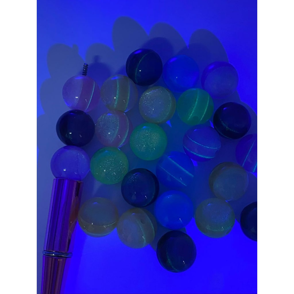 Double Blue Glitter Glossy Acrylic Beads na may Luminious Strip sa Gitna ,16mm,Random Mix ,YH