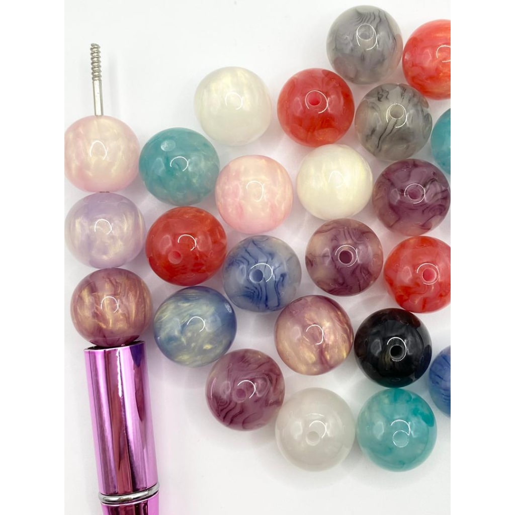 Makintab na Acrylic Beads na may Striated Pattern,16mm,Random Mix,YH