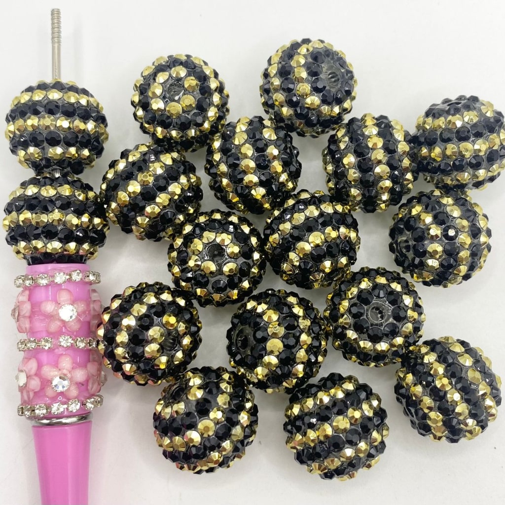 Black And Gold Swirl Acrylic Rhinestone Beads ,20mm