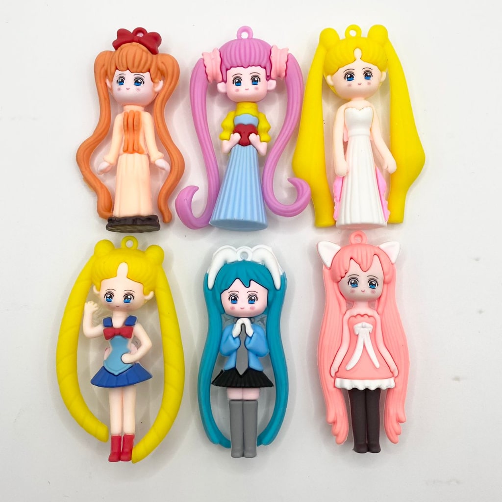 3D Sailor Moon Cartoon Characters Silicone Pendants ( Can't fit on the pens) ,1set =6pcs ,Random Mix
