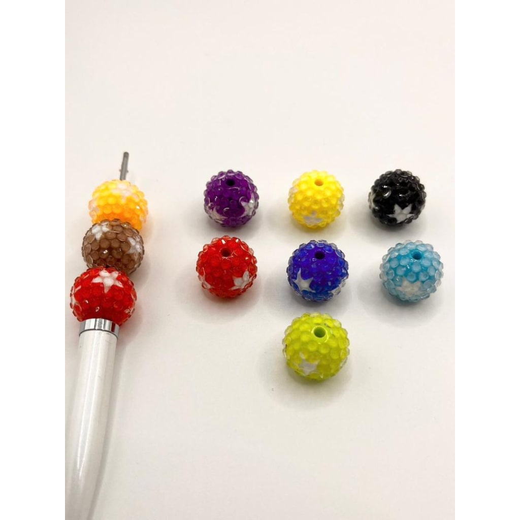 Colorful Jelly Acrylic Beads With White Star ,Random Mix,18mm,ZY