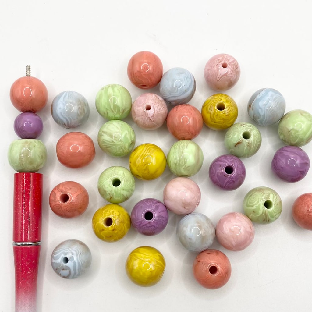 Macaron & Light Color Ombre Glossy Acrylic Beads With White Stripe Inside,12mm & 16mm,Random Mix ,MC