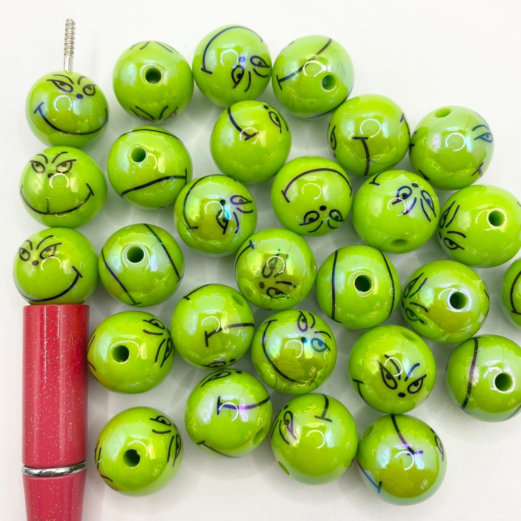 Green Grinch Face Glossy Acrylic Beads With UV Finish ,16mm,Random Mix,SJ