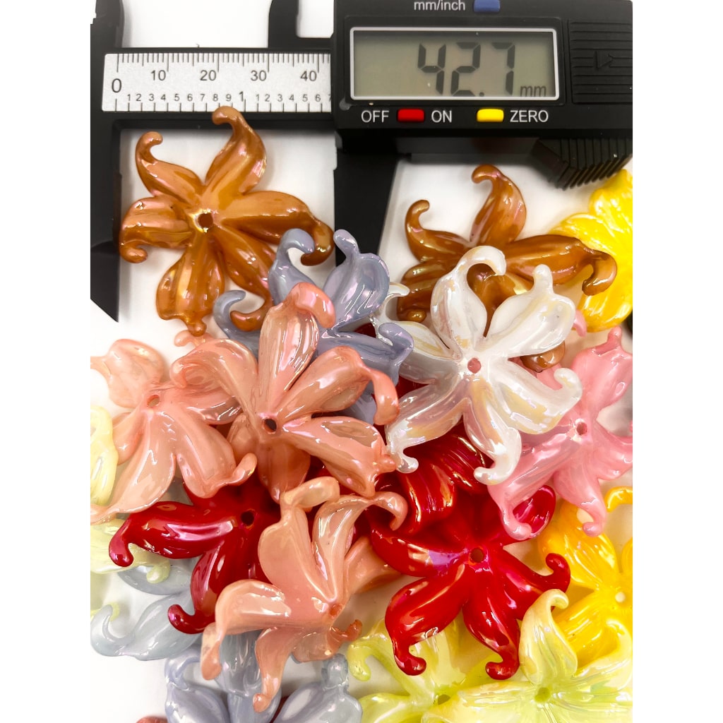 Cute Flower with Curly Leaf Acrylic Beads,Mix Solid Color, 43mm
