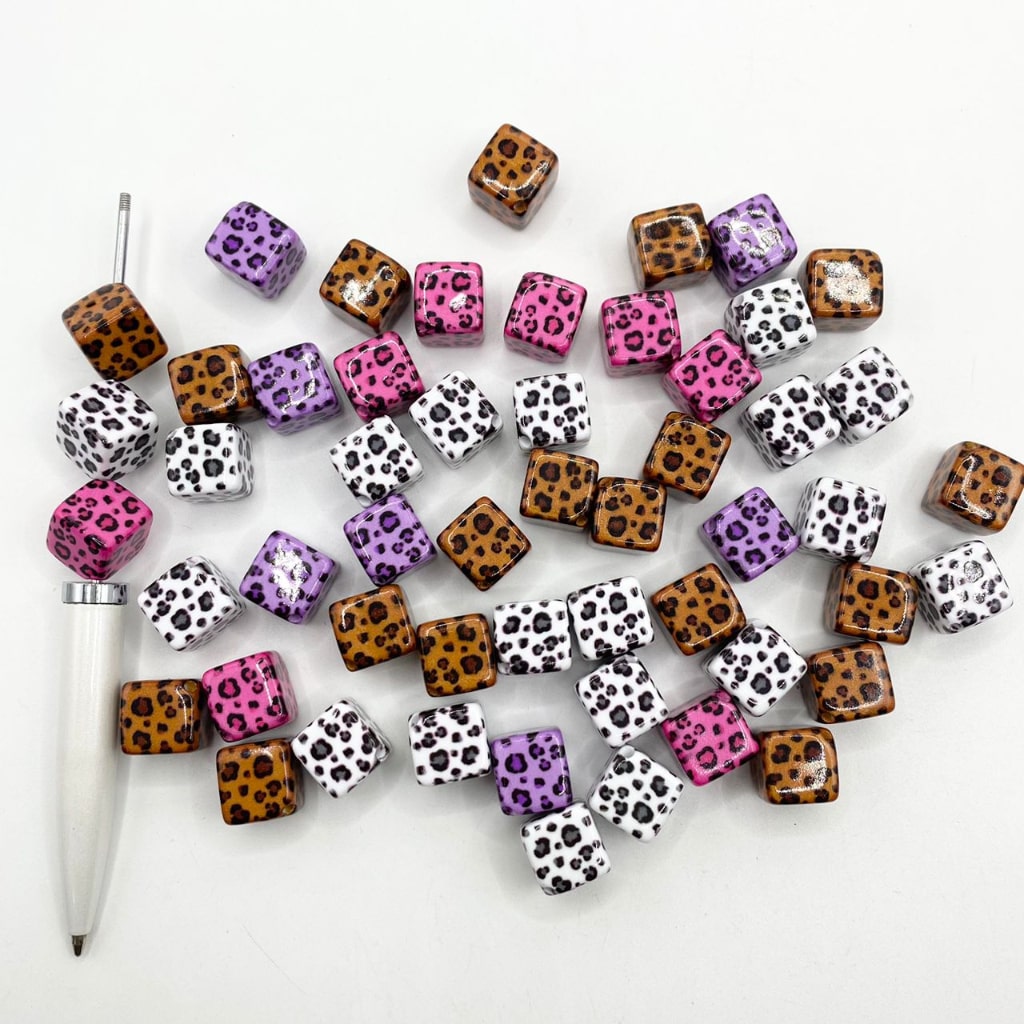 Cube Lepoard Acrylic Beads ,11mm by 16mm,Random Mix ,SB