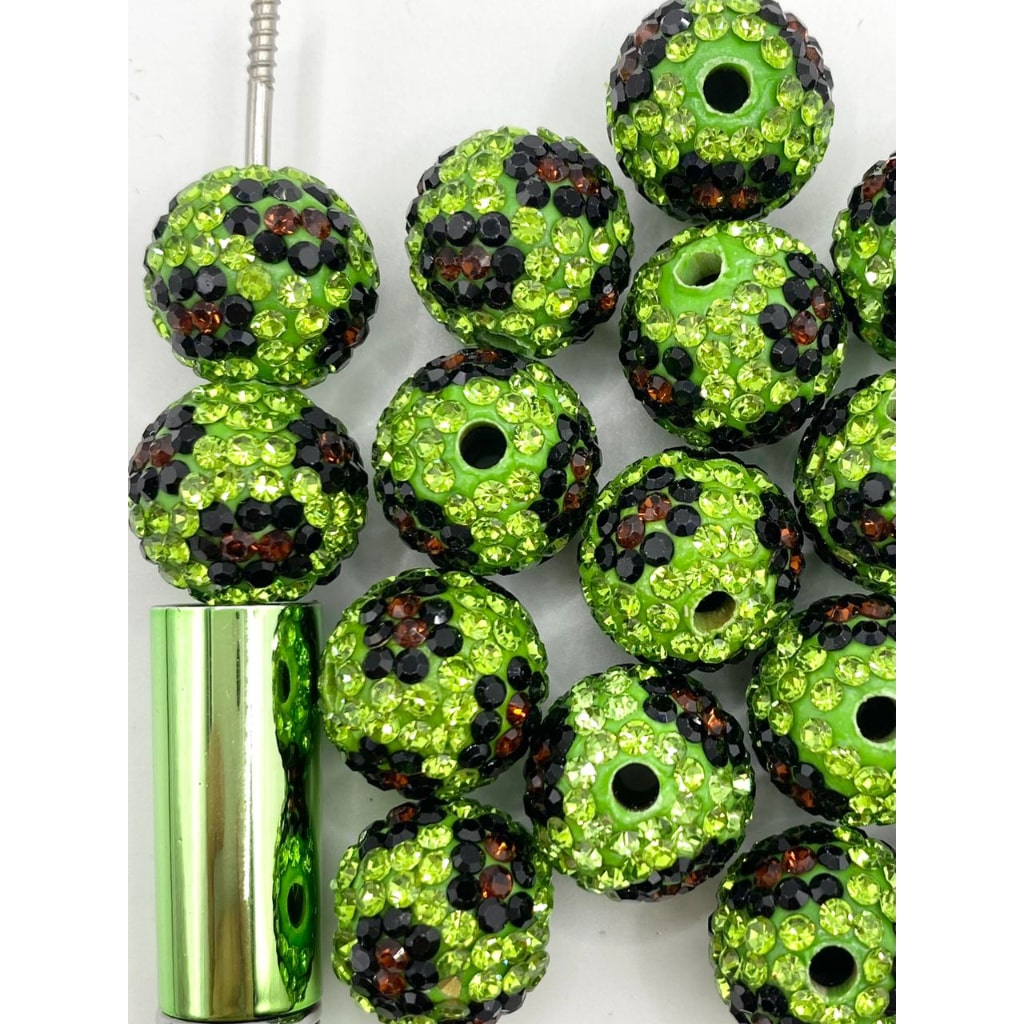 Green & Purple Lepoard Clay Beads with Multicolor Rhinestone ,18mm,ZY