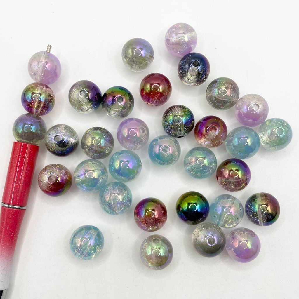 Half Clear See-Thru Ombre Acrylic Beads With Silver confetti & Bubble Inside ,16mm,Random Mix