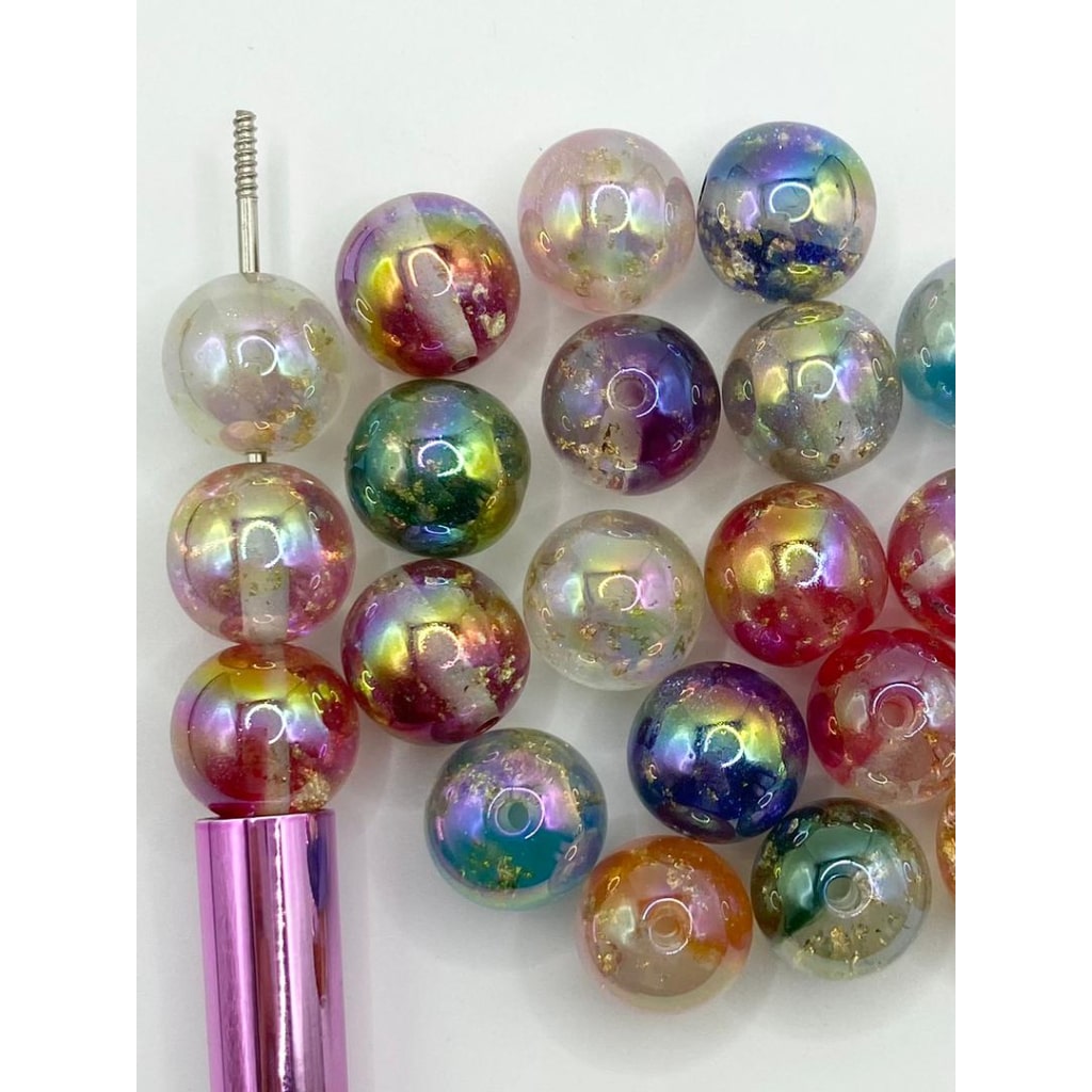 UV Glossy Glitter Acrylic Beads with Gold Foil ,16mm,Random Mix,MN