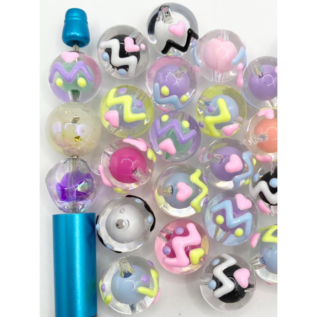 Double Clear See-Thru Hand Painted 'M' Or 'W' & Heart Acrylic Beads,16mm,Random Mix,DK