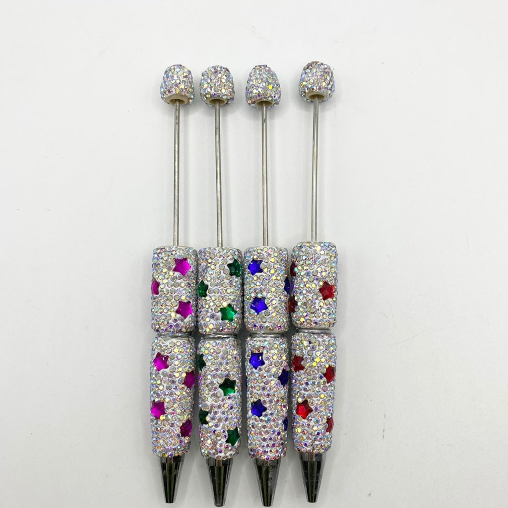 White Fancy Clay Beadable Pens With Multicolor Star,Random Mix
