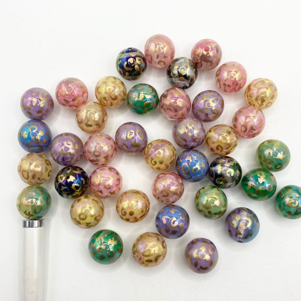 Transculent Leopard Glossy Acrylic Beads With UV Finish ,16mm,Random Mix ,SJ