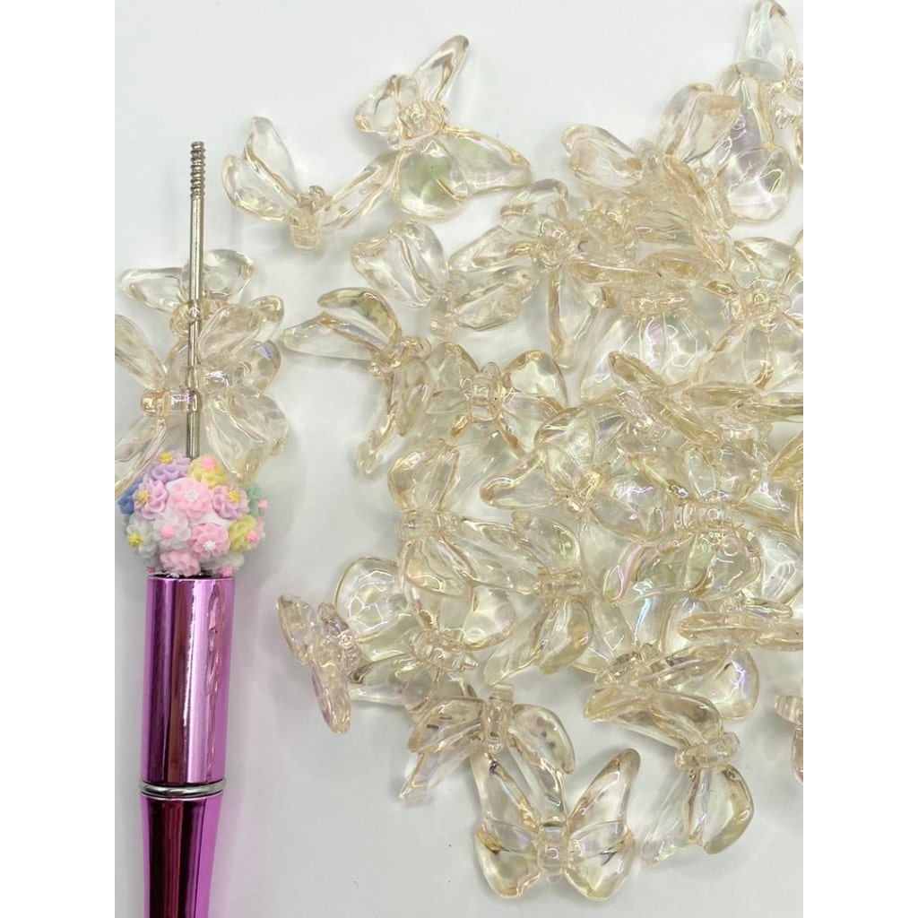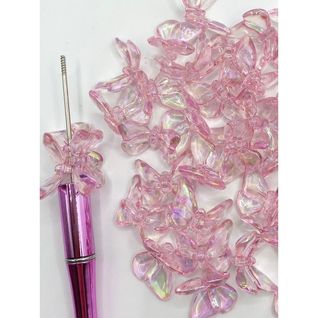 Clear & Pink See-Thru 3D Butterfly Shaped Acrylic Beads,right to left holes
