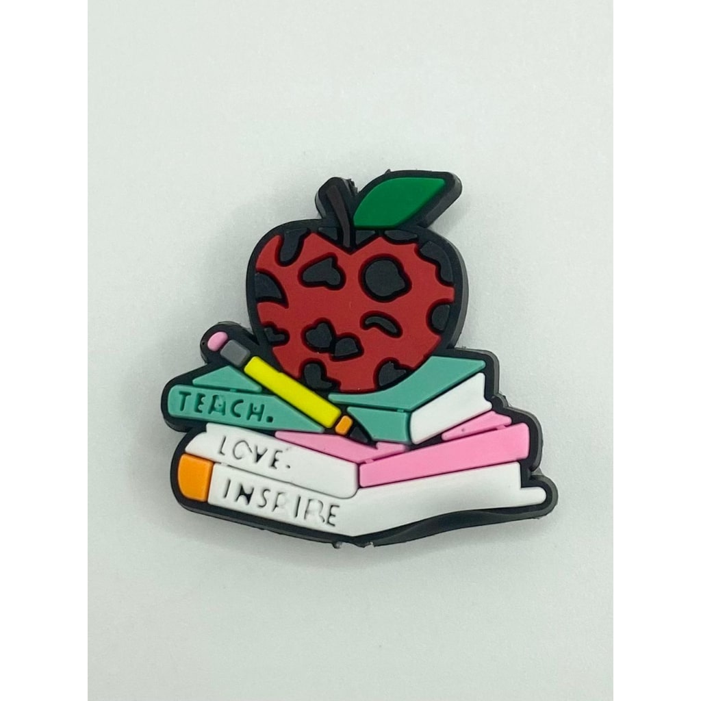 Apple & Pencil & Books With Teach Love Inspire Silicone Focal Beads
