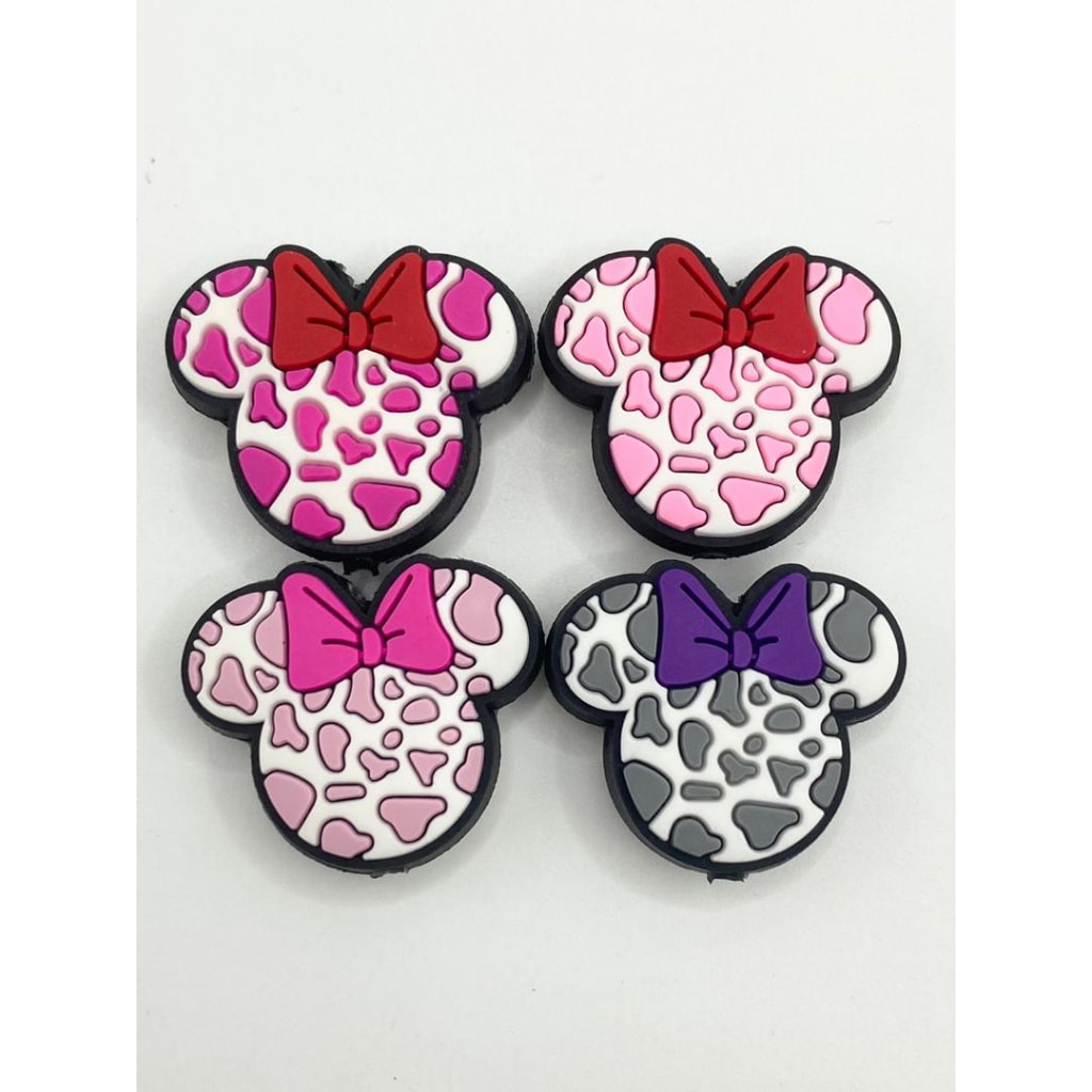 Cow Printed Minnie Head With Bowknot Silicone Focal Beads,Random Mix