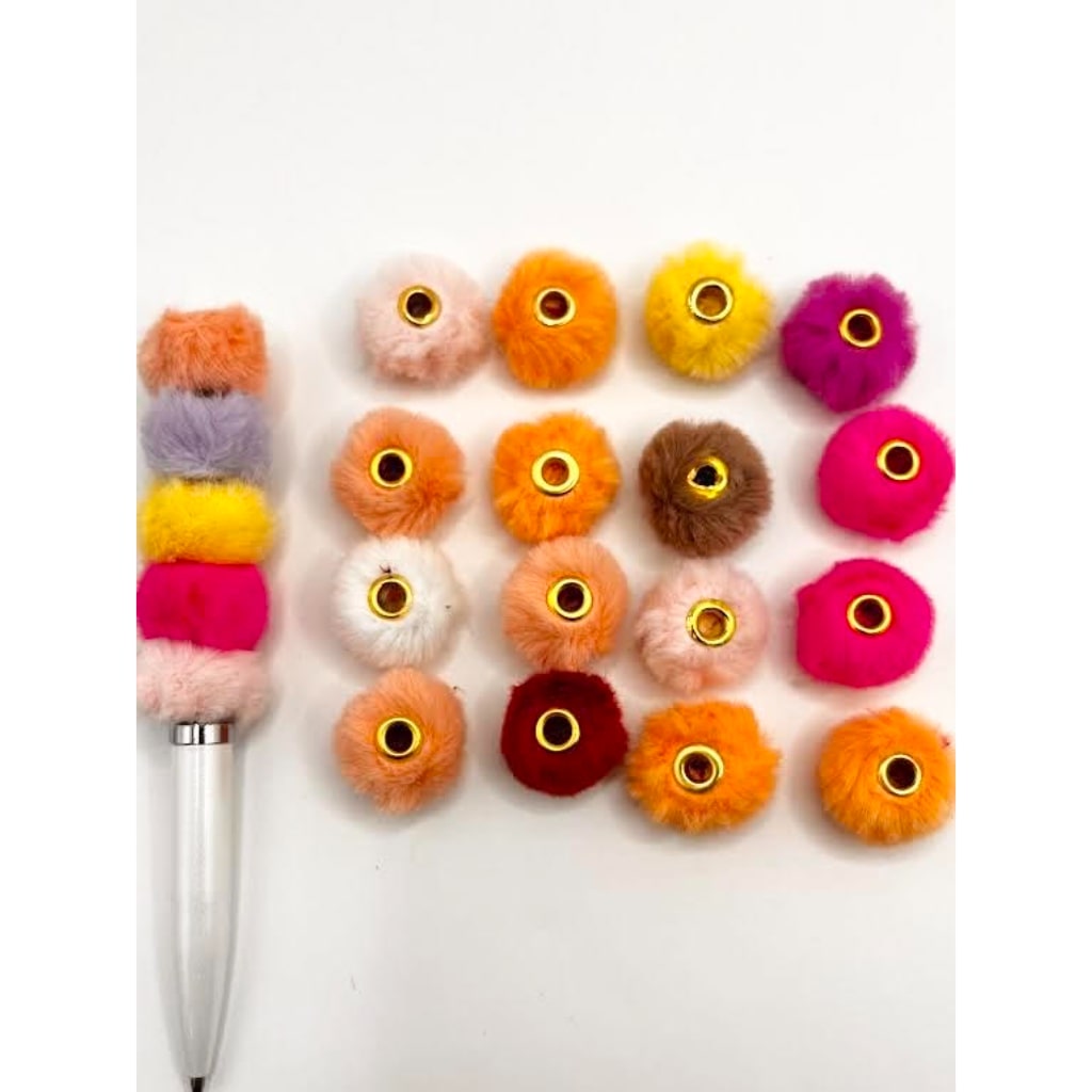 Pom Pom Fluffy Hard Beads and in Solid Orange Colors, Random Mix, Large