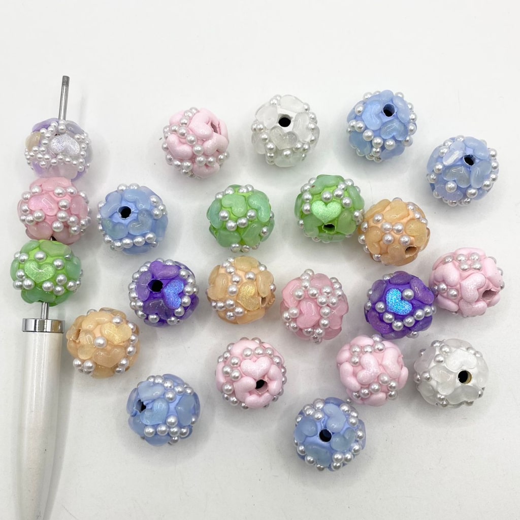 Fancy Acrylic Beads With Heart Crystal & Pearl in the Surface ,16mm,Random Mix,ZY