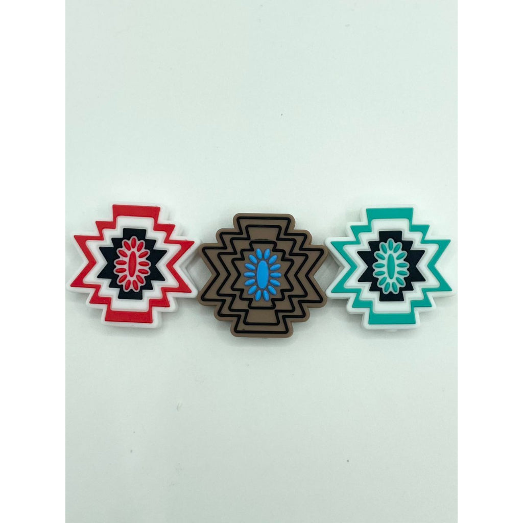 Aztec Pattern Silicone Focal Beads, Random Mix