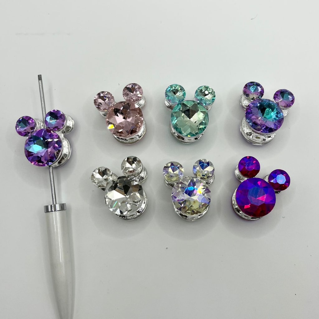 Metal Alloy Holly Micky Mouse Head Beads With Rhinestone ,24mm by 26mm, Random Mix,ZY