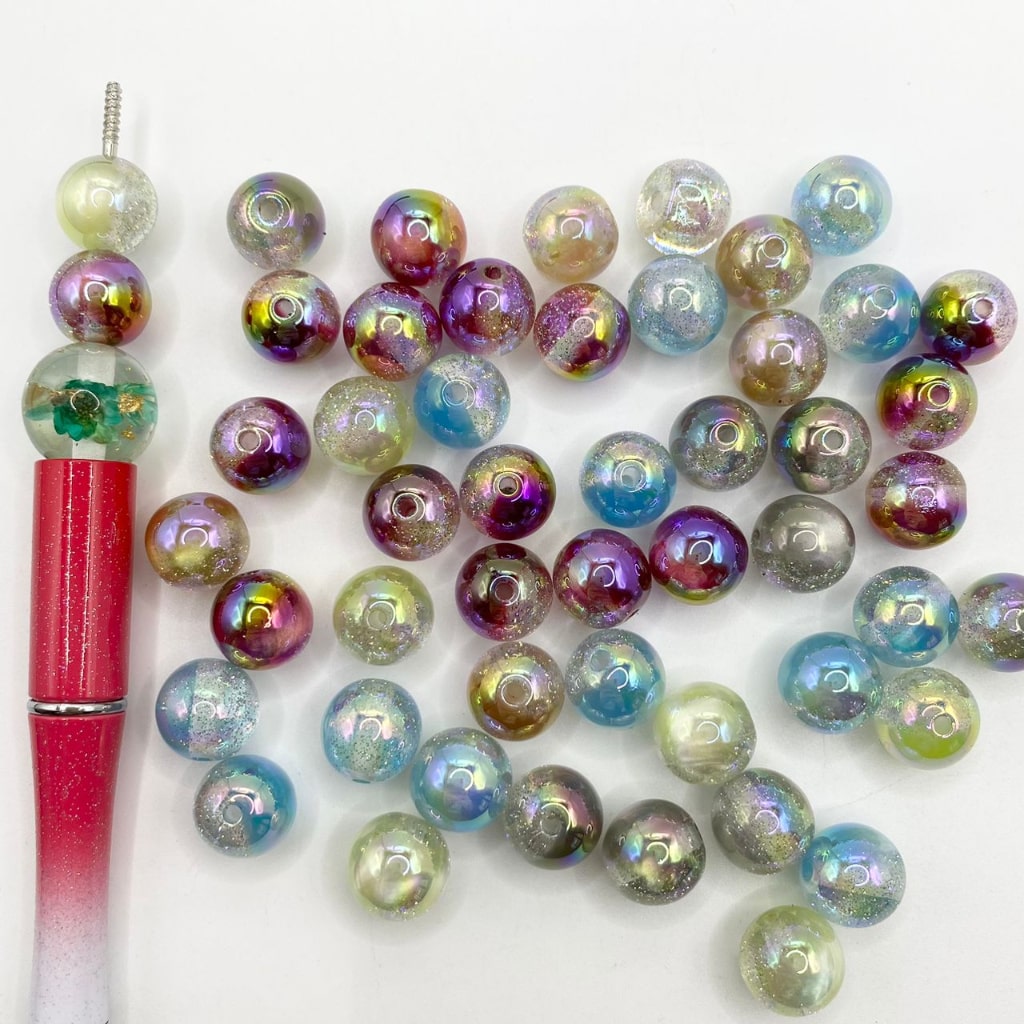 Half Clear Within Glitter Elegant Glossy Acrylic Beads With Extra UV Finish,12mm ,Random Mix,XX