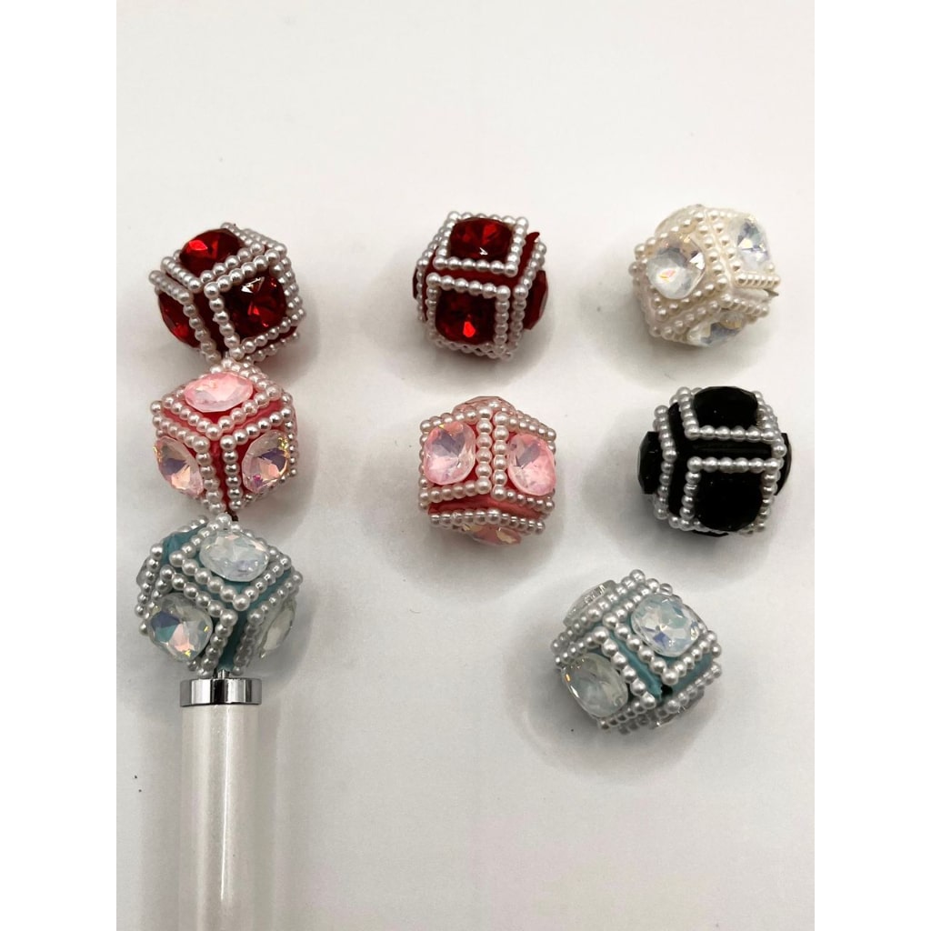 Cube Clay Beads With Big Crystal around Small Pearls ,Random Mix,ZY