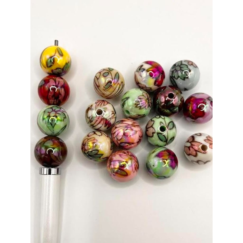 Flower & Leaf Painted Multicolor Printed Glossy Acrylic Beads,16mm, Random Mix,DK