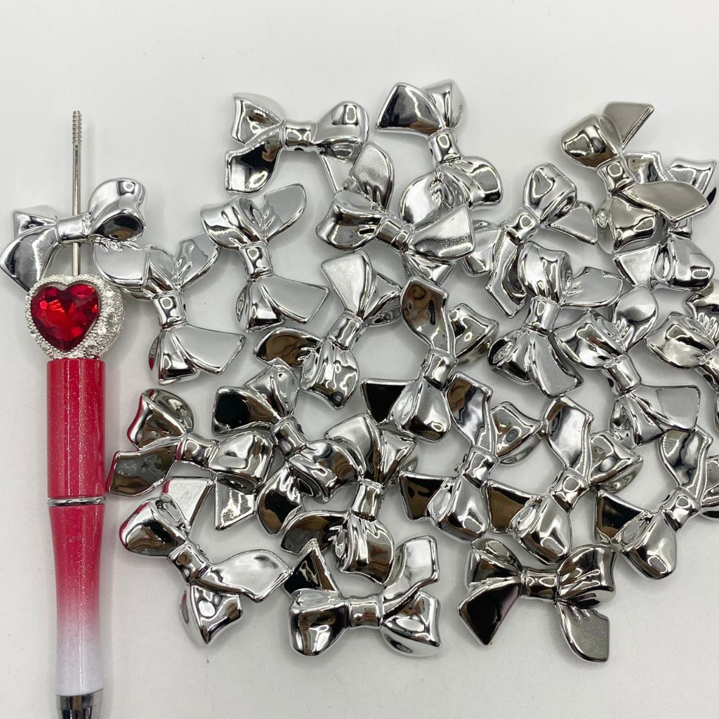 Silver Color Bowknot Acrylic Beads,23mm by 32mm ,SW