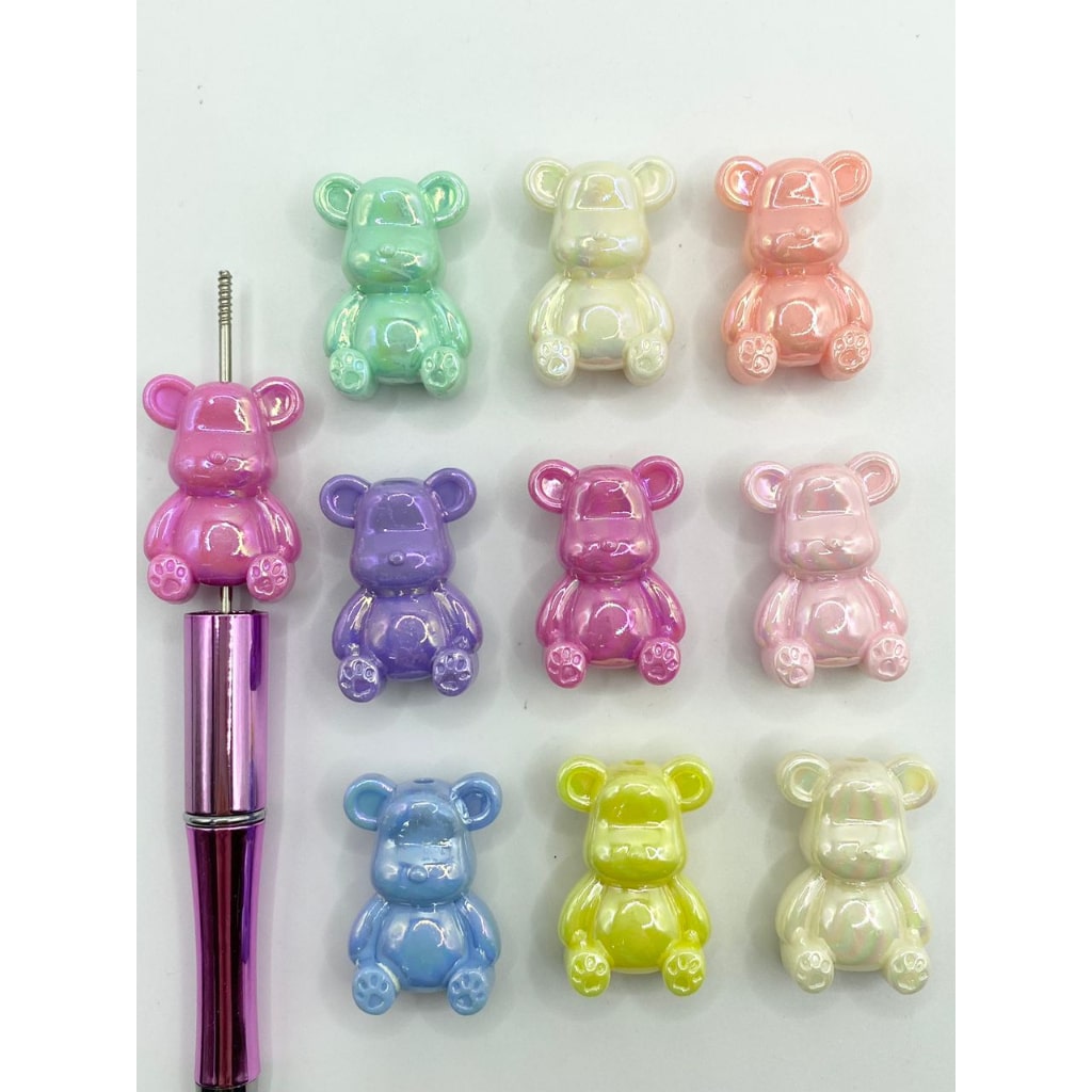 Sitting Teddy Bear Acrylic Beads With Solid Color,32mm,Random Mix,MC