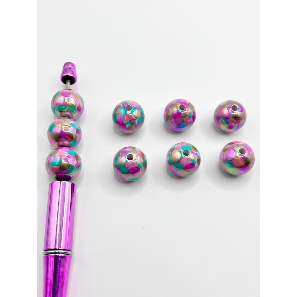 UV Coating Glossy Acrylic Beads with Colorful Circle Painted ,16mm,SJ